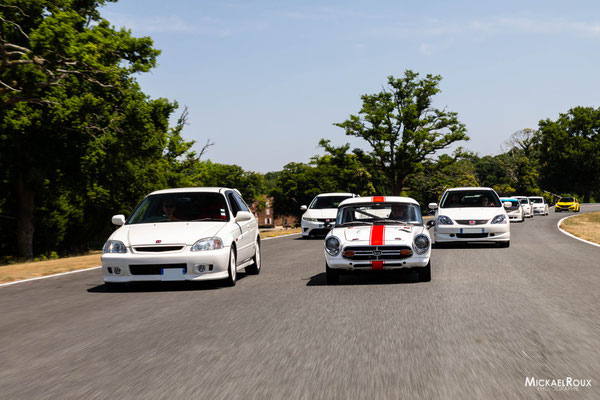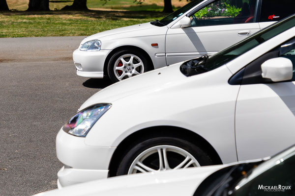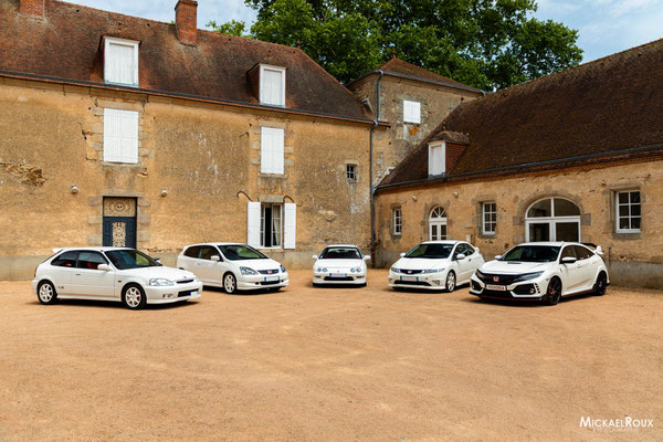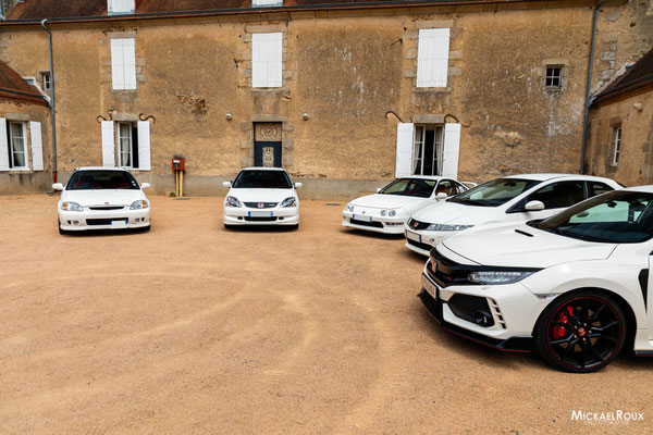 On débute par des photos de l'exposition des Type R white championship, avec des photos en travelling sur la piste et en statique devant le château.